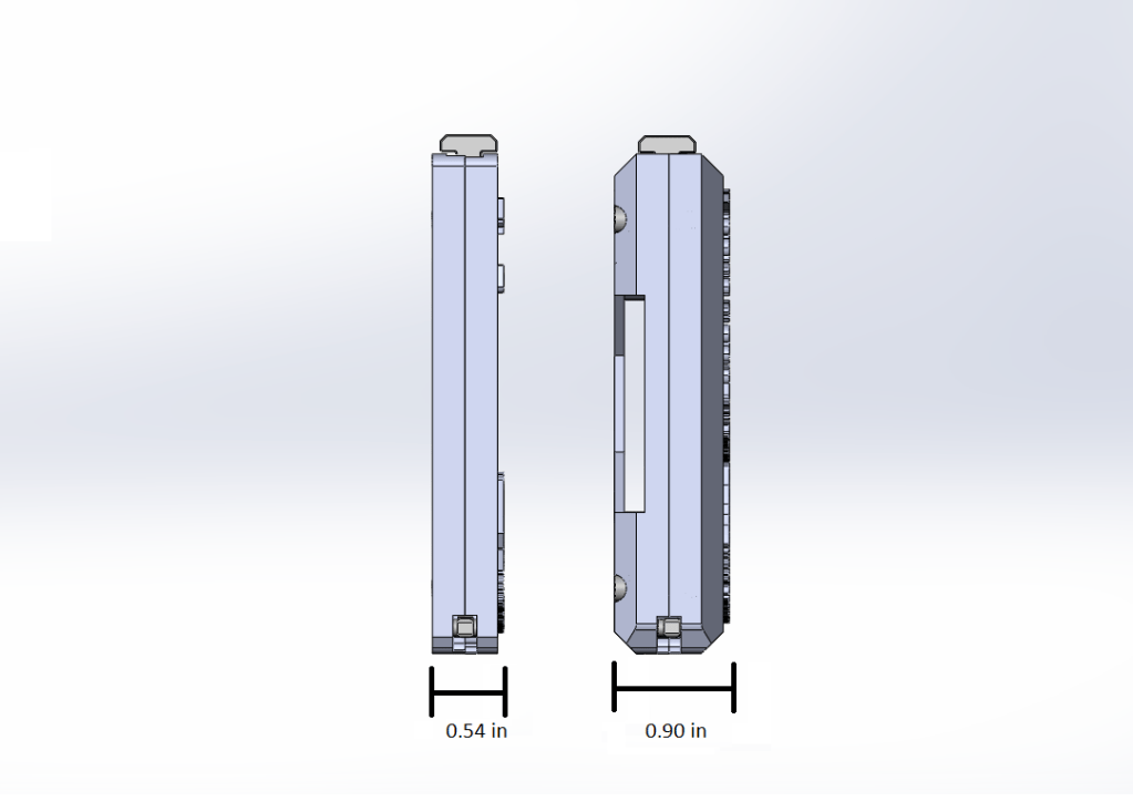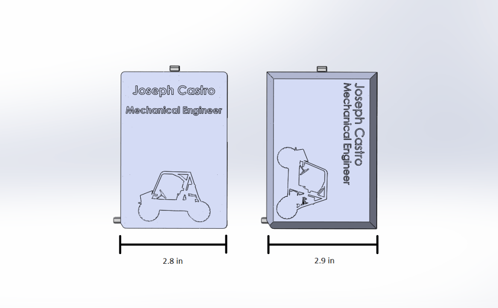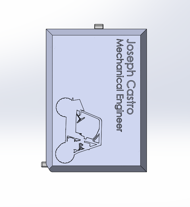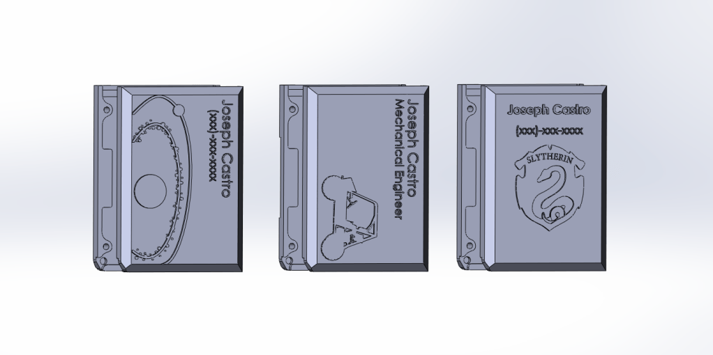 First stages (Fig 1) started with a uni-body design, however, this took away from the ability to customize the wallet without the need to print out a whole new wallet. The second (Fig 2) and third picture (Fig 3) showcases the two-body design with the third iteration including bump stops, on the left and right side, to limit the rotation of the cards inside.