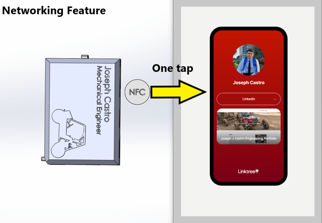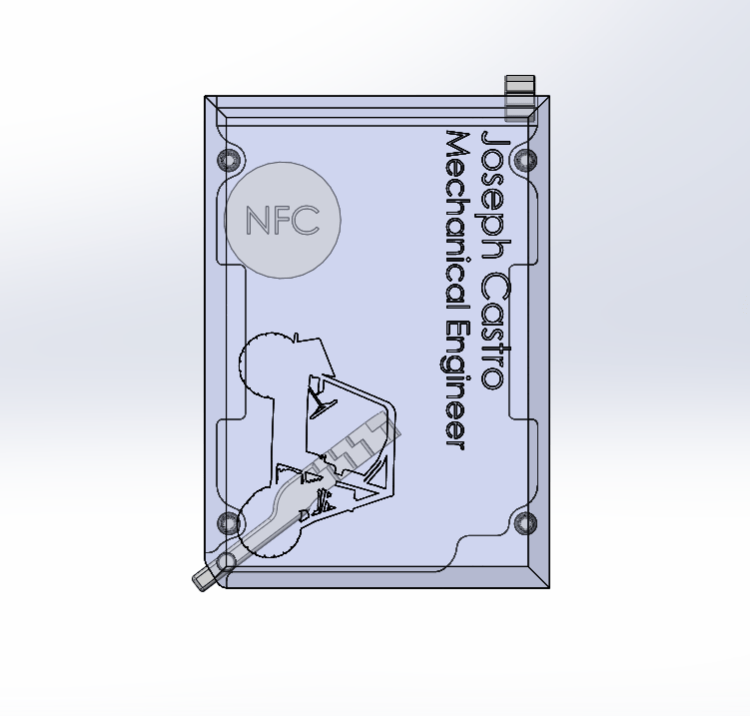 Welcome! Thank you for choosing to look at my wallet design with an integrated networking feature. This Wallet is designed around the parameters of an average wallet and utilizes NFC technology to create an integrated electronic business card.